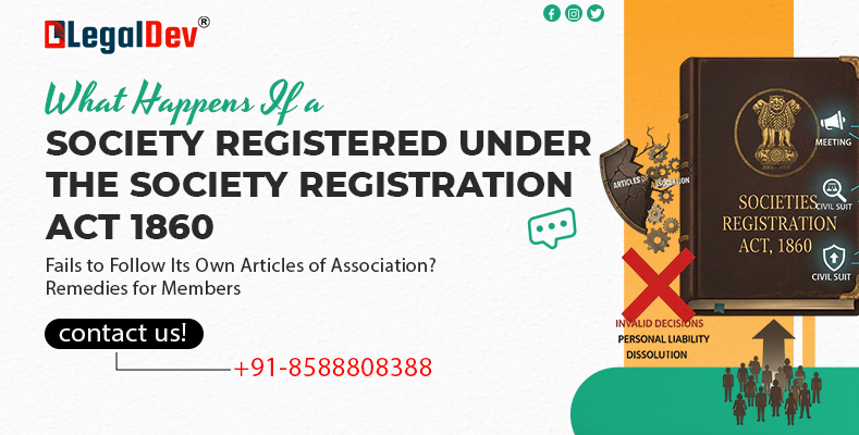 Registered societies under the Society Registration Act, 1860 have a major impact on India's social service sector, including many aspects of the socio-educational-charitable-nonprofit ecosystem. From educational institutions through many thousands of non-profit organizations, to cultural organizations and welfare organizations, registered societies are trusted vehicles for collective action and for doing good in society. The public's continued confidence in registered societies will be maintained as long as they operate under the rule of law, as well as their own governing documents. A registered society operates according to its own Memorandum of Association and Articles of Association or governing rules. These documents are not simply procedural forms that are submitted to accomplish registration; they are authoritative governing instruments governing internal governance of the society, member rights, governing body powers, financial management and dispute resolution. If a society fails to operate according to its own governing documents, there can be serious legal, governance and reputational ramifications. Members can suffer the deprivation of their rights; society decisions can become invalid, and ultimately a society can be challenged. This article discusses what should be done when a society fails to operate according to its governing documents pursuant to the Society Registration Act and the remedies available to affected members in accordance with applicable laws.