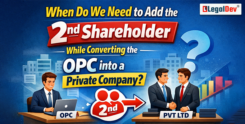 Under the Companies Act, 2013, a One Person Company (OPC) was added to the corporate structure in order to support single owner businesses and give them full control with limited liability. OPCs have been an instrumental tool in helping startups, consultants, freelancers, and small business owners who desire to have all of the advantages of operating as a corporation without having the complexities of multiple owners sharing in the company's assets and liabilities. However, as a company grows, and an OPC matures, often times there will reach a point in time where an OPC must convert to a private limited company either due to the pressures of developing the business (expansion), obtaining external financing, establishing additional credibility through a stronger corporate structure or complying with laws and regulations. At this point in time (conversion) does not become optional for the company – the conversion from OPC into Private Limited Company becomes purely a strategic and legal imperative. One of the major and most often asked questions that business owners (in the transition from OPC to Private Limited Company) have is: When specifically does a company need to add the second shareholder when converting its OPC into Private Limited Company? This blog will provide clear (legally supported) and business friendly explanations of when and why the second shareholder is required, the legal framework for converting OPC's into Private Limited Companies, and how an entrepreneur can successfully complete the conversion process (from OPC into Private Limited Company) with minimum risk of noncompliance.